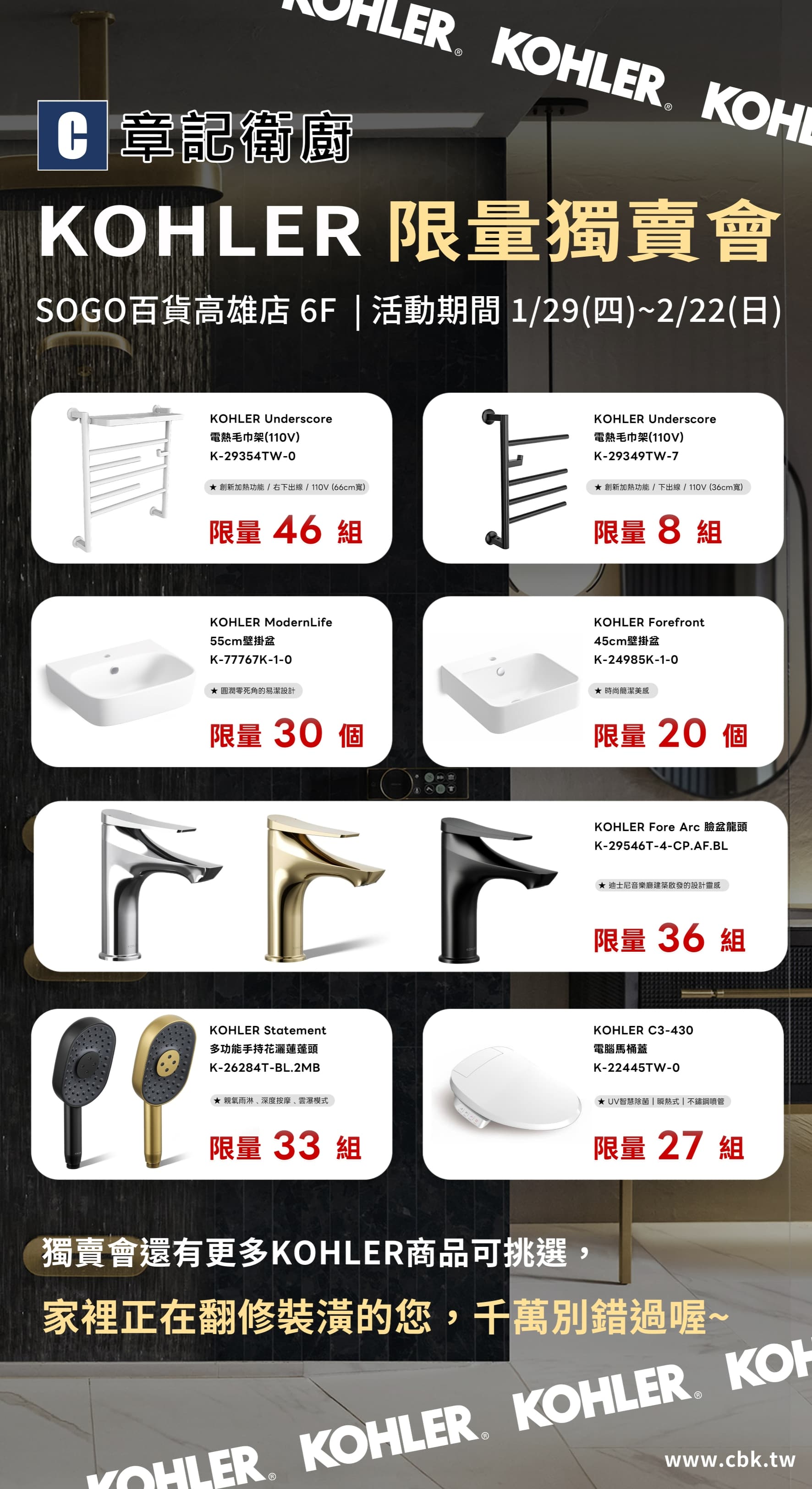 📣 KOHLER 衛浴限量獨賣會,只在SOGO百貨!