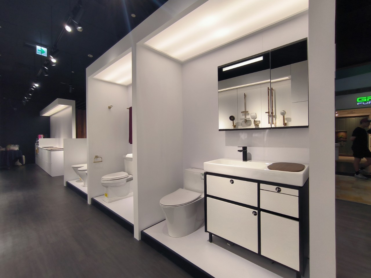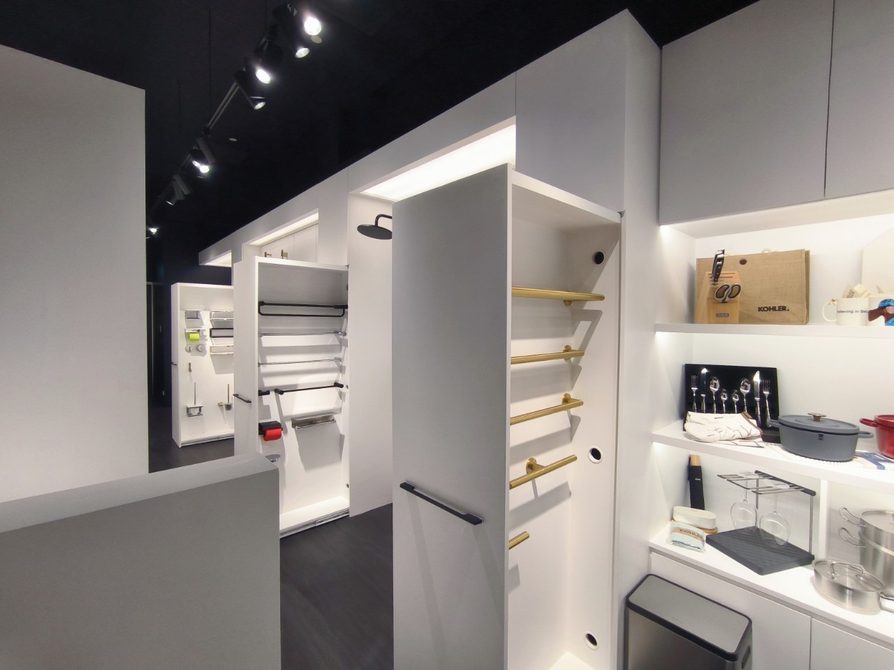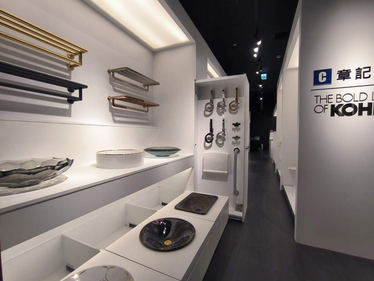 櫃位展示了美國百年廚衛經典品牌KOHLER的最新商品,包含莊園風格的開放式廚房,以及各品牌的衛浴設備和廚房家電。現在就來章記衛廚,規劃您的夢想廚房和五星級衛浴吧!