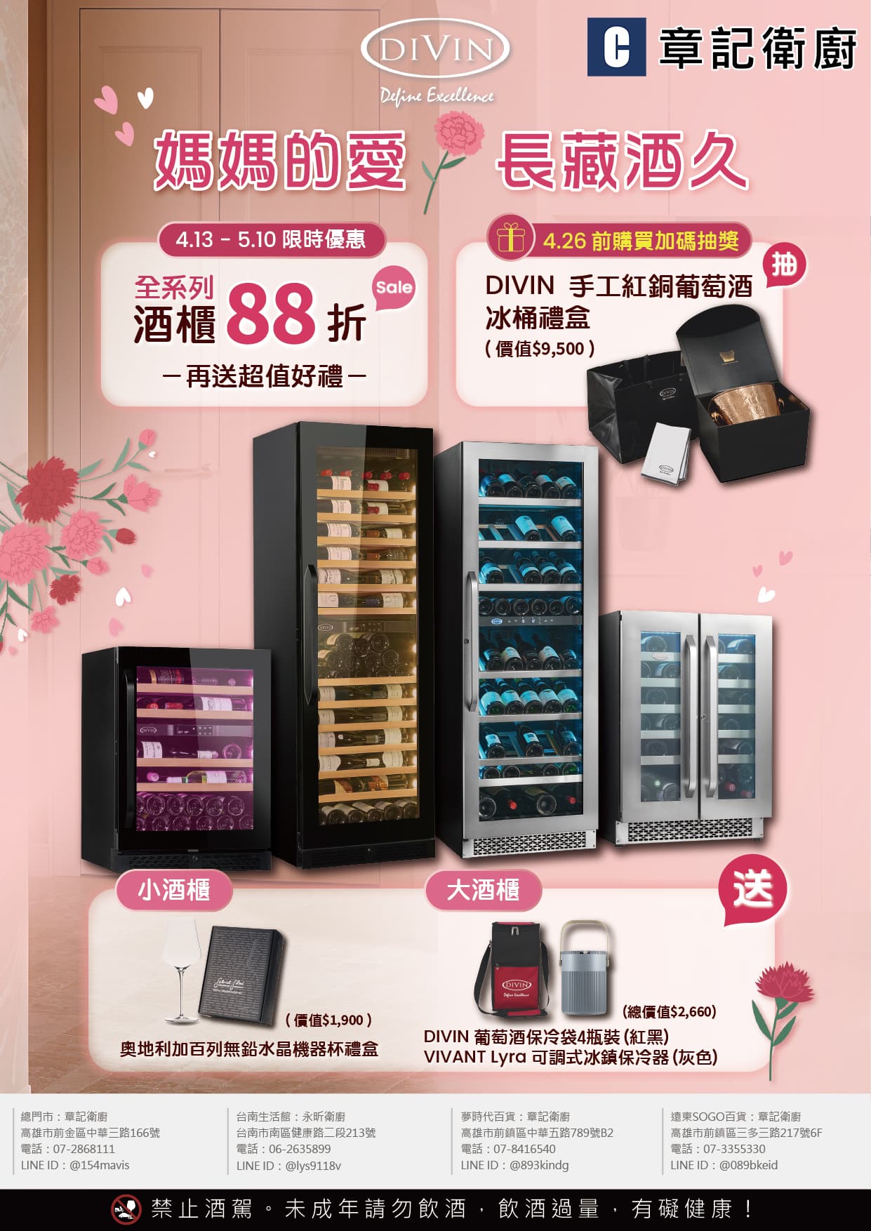 我們銷售全系列的 DIVIN 紅酒櫃 (全省宅配到府)
