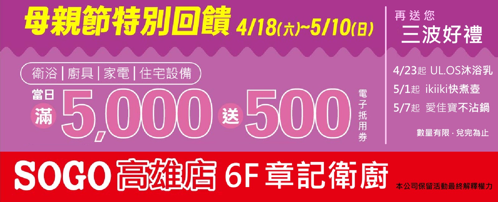 ★ SOGO章記衛廚 ‧ 母親節特別回饋 ★