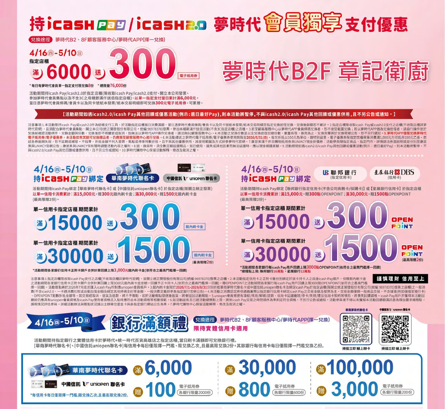 💝刷I CASH PAY綁定聯名卡或Uni open滿1萬5送300刷卡金(一卡1份)