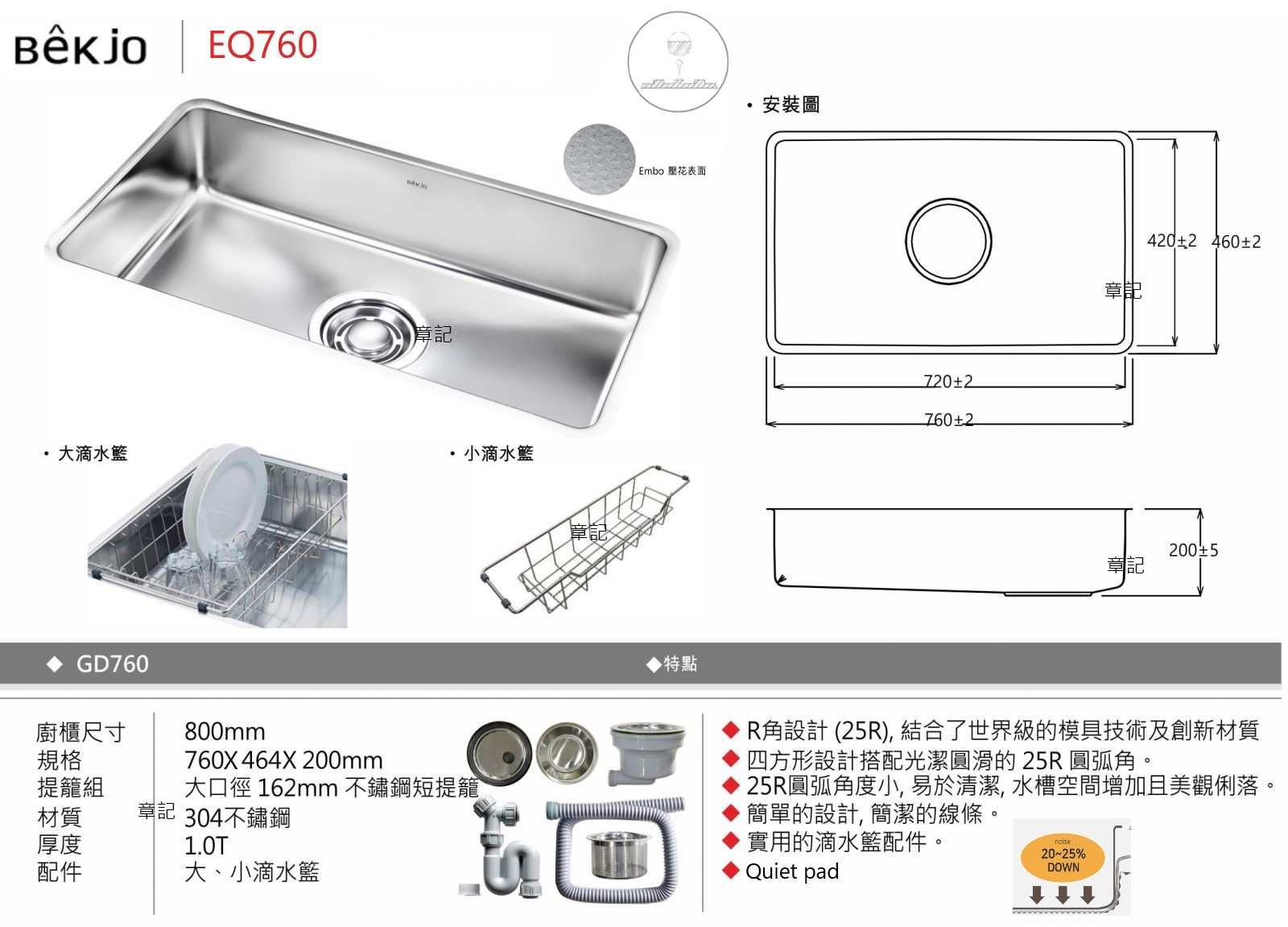 Bekjo 不鏽鋼壓花水槽(76x46.4cm) EQ760