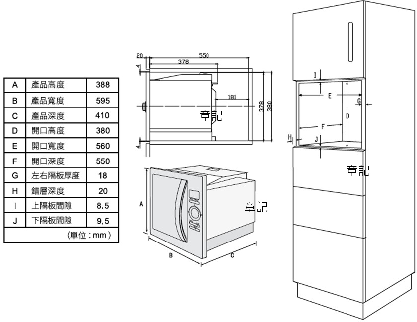 TEKA嵌入式微波烤箱 MWE-258-FI-BK 尺寸圖