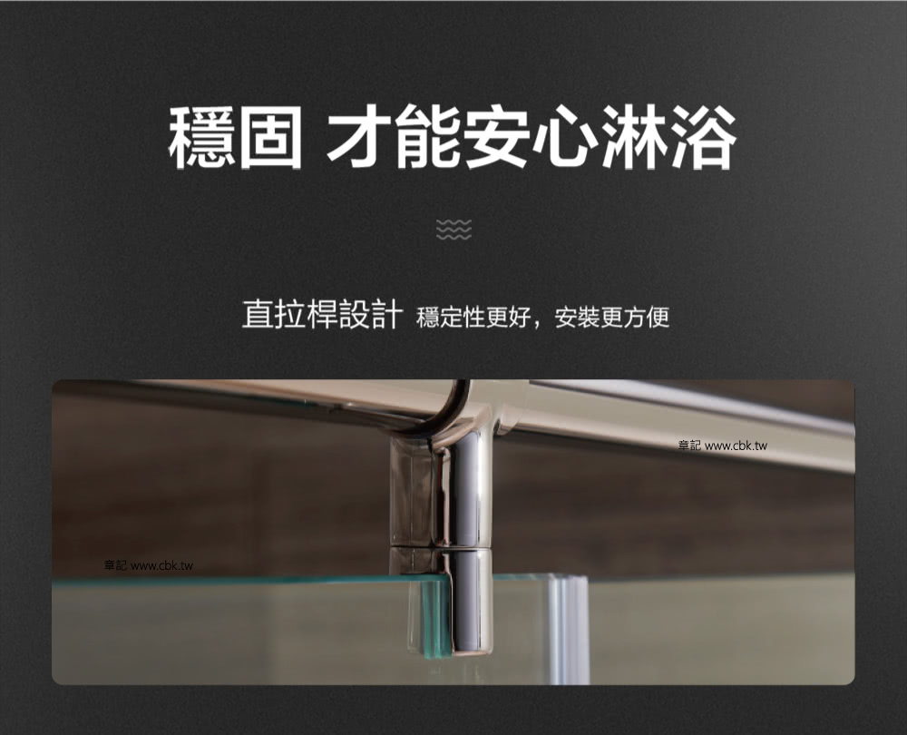 一字形固定片 | 頂部可裝加強桿 | 8mm強化玻璃