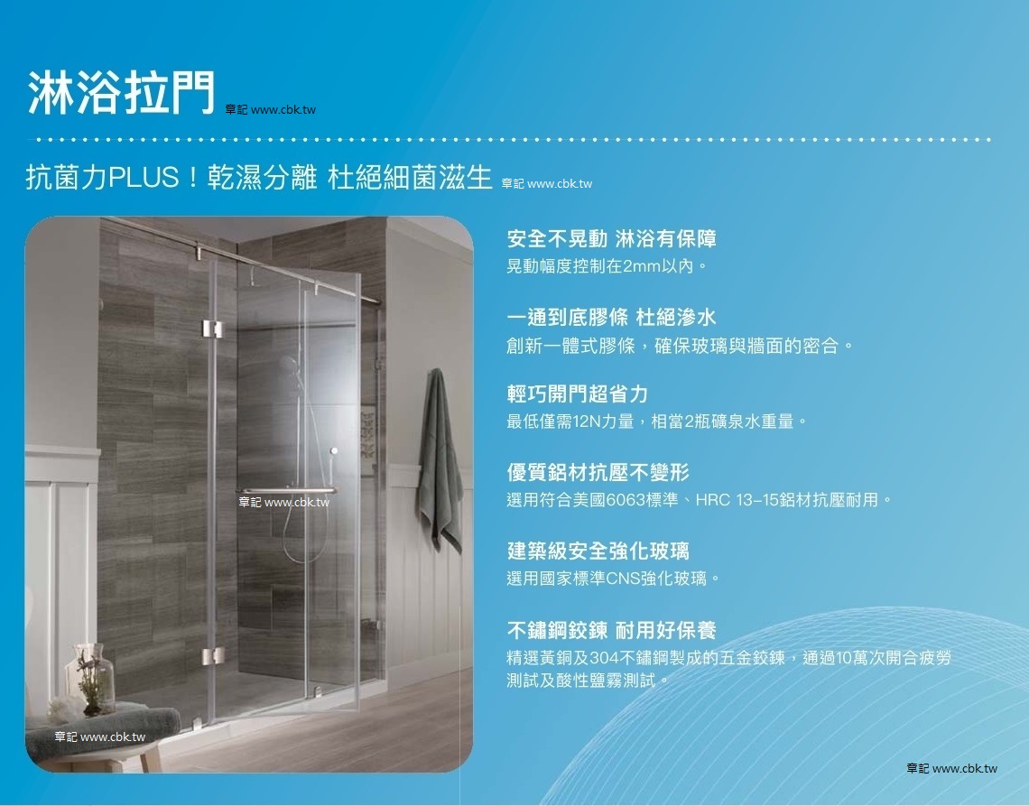 210cm以下 | 玻對玻鉸鍊 | 8mm強化玻璃