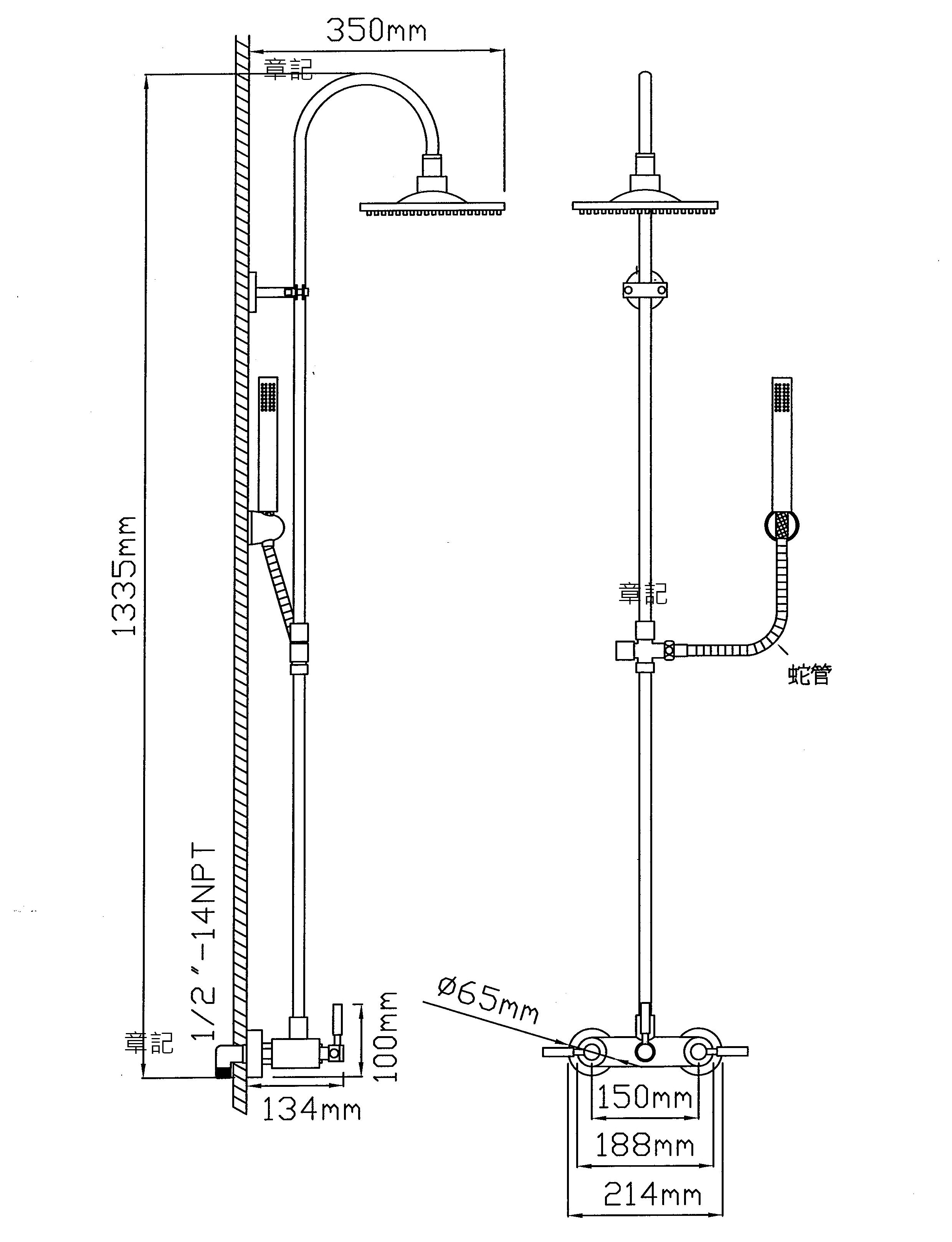 麗萊登(LILAIDEN)經典淋浴柱 LD-2121D 尺寸圖