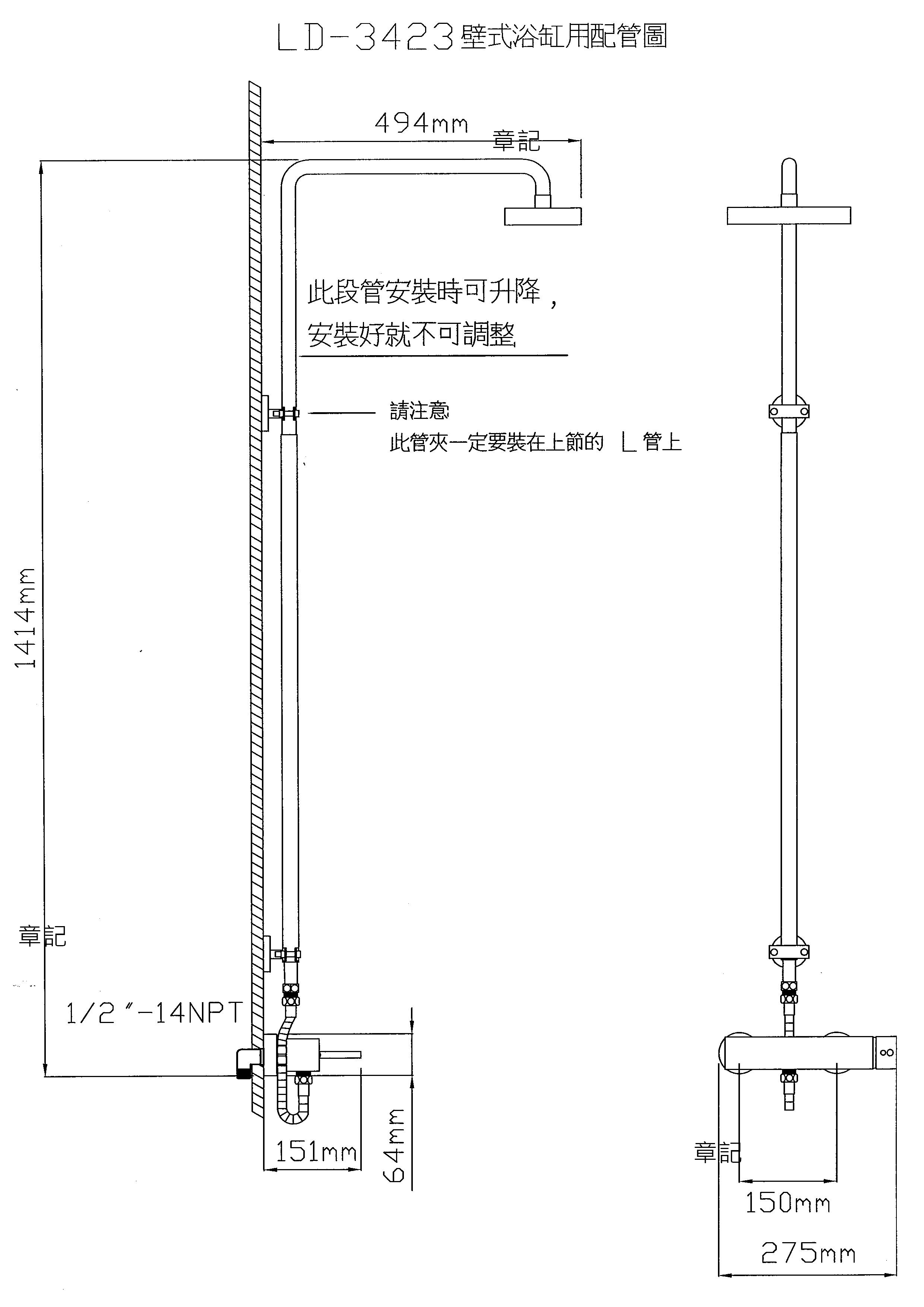 麗萊登(LILAIDEN)時尚淋浴柱 LD-3423 尺寸圖