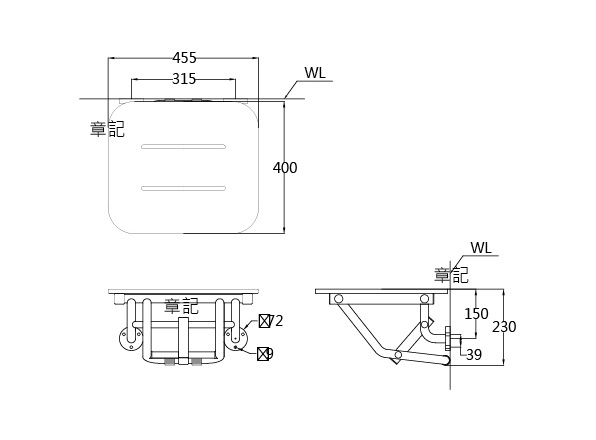 凱撒(CAESAR) 掛牆式淋浴椅 SC102 尺寸圖