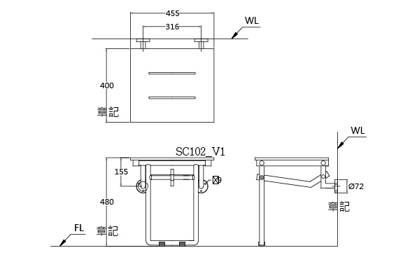 凱撒(CAESAR) 落地式淋浴椅 SC104 尺寸圖