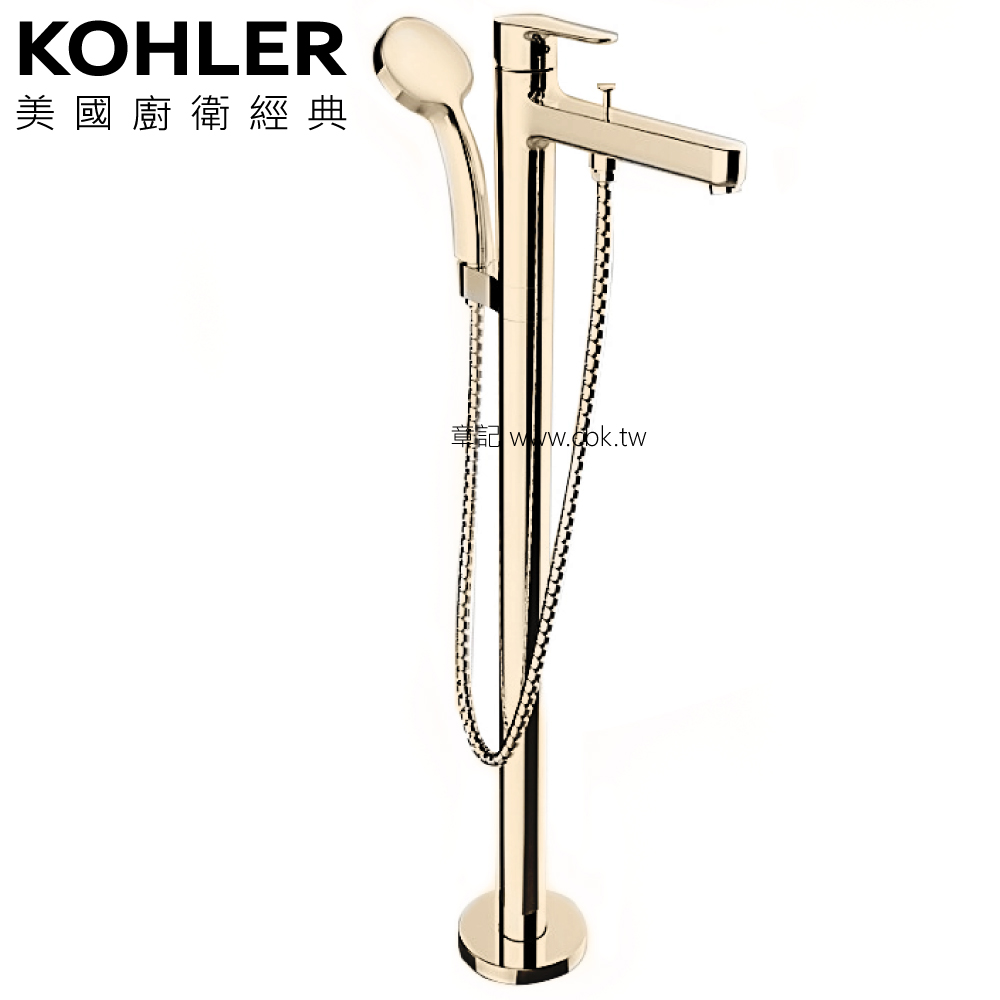 KOHLER July 落地式浴缸龍頭附軸心 (法蘭金) K-98614T-B4-AF:單槍式冷熱混合控制