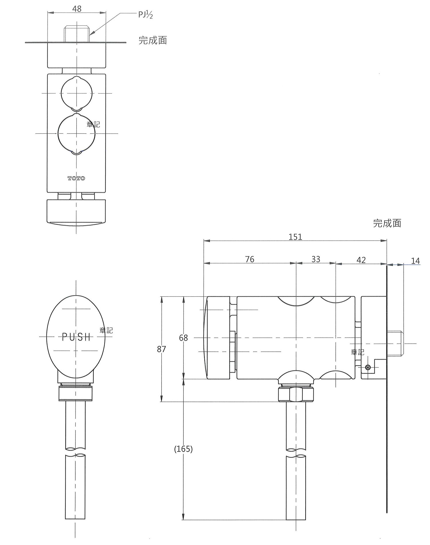 TOTO 小便斗沖水閥 TG600PN 尺寸圖