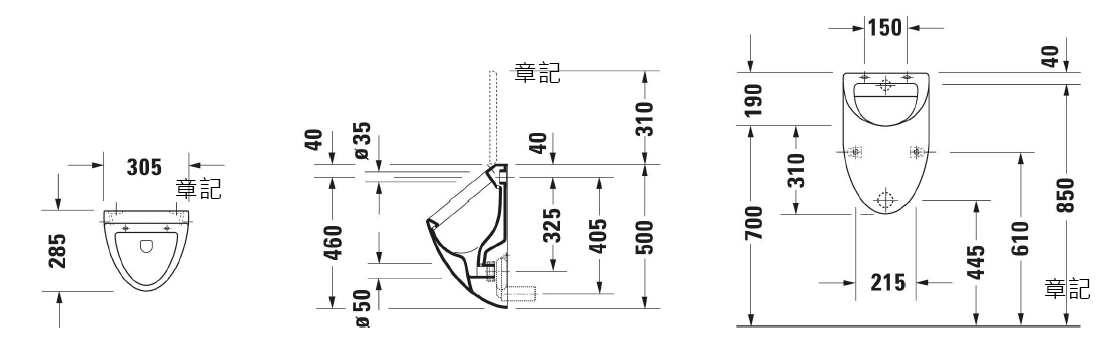 Duravit Fizz 小便斗0823350000 尺寸圖