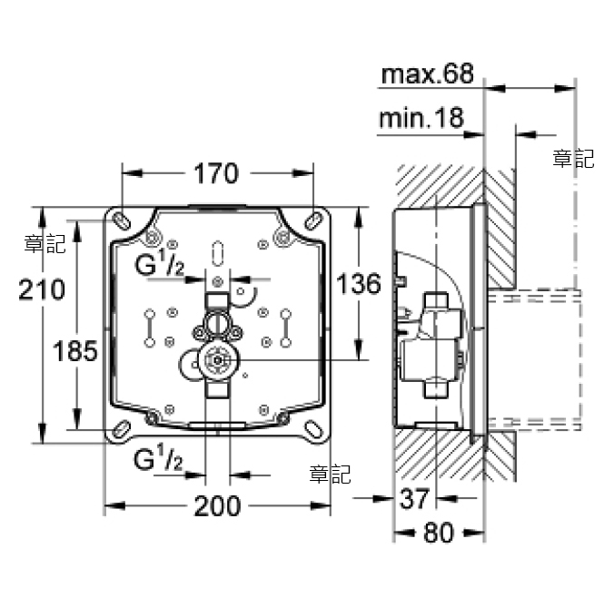 德國GROHE 埋壁軸心 38787000 尺寸圖