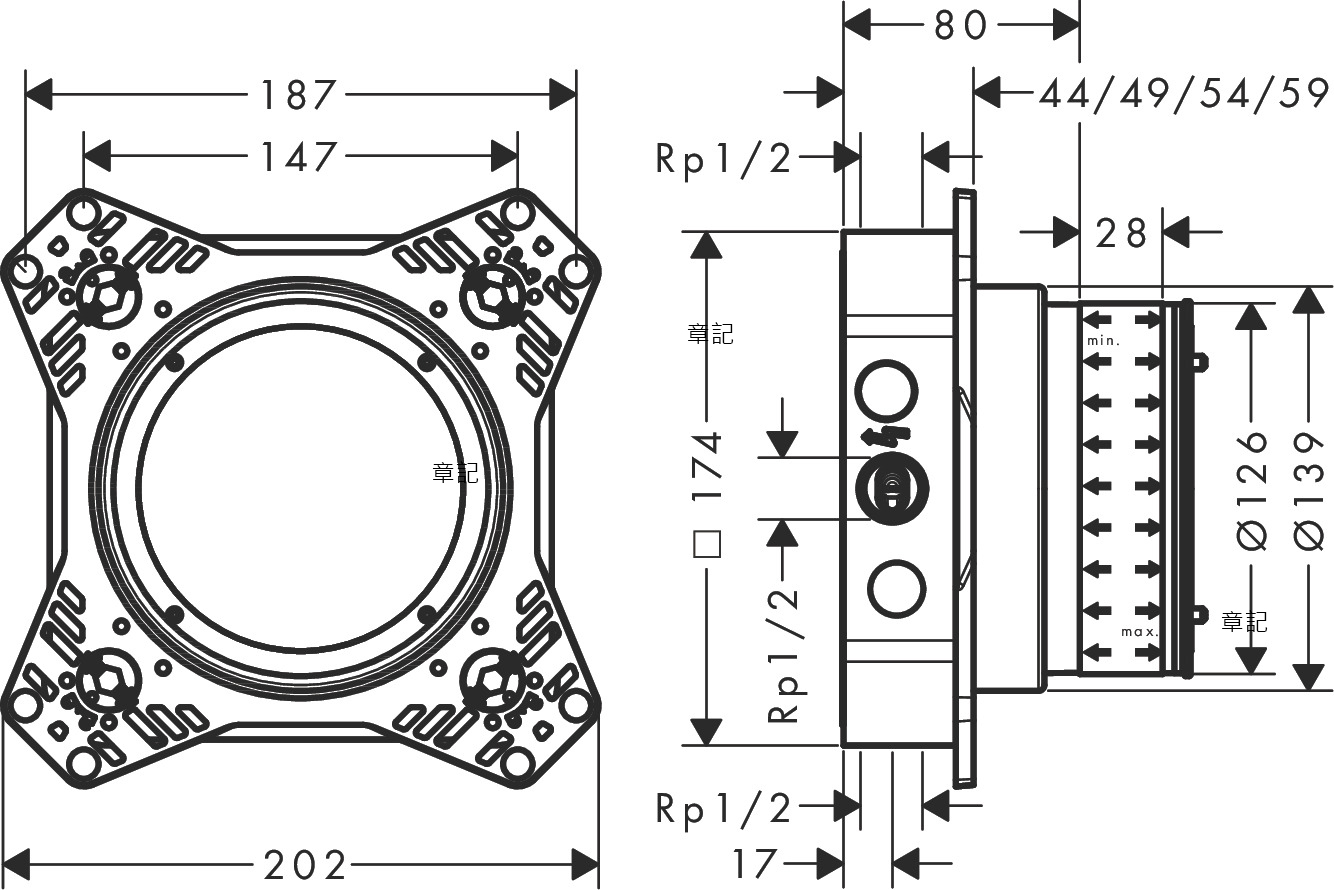hansgrohe iBox universal 2 多功能隱藏軸心 01500180 尺寸圖