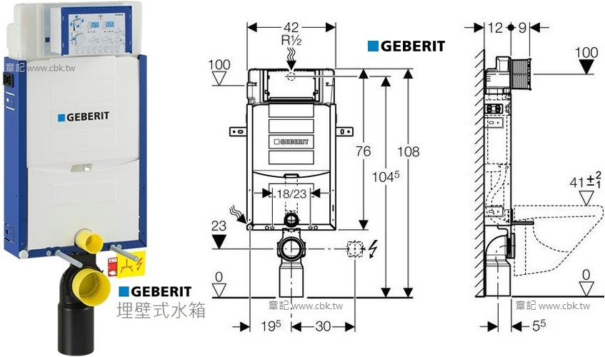 埋壁式水箱設計,簡潔俐落:110.350.00.5磚牆式埋壁水箱附沖水面板