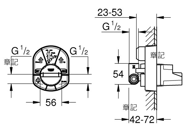 GROHE 1/2 吋單把手混合龍頭埋壁本體 33964000 尺寸圖