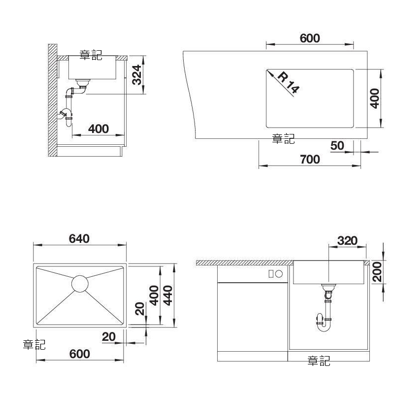 BLANCO QUATRUS 600-IU 不鏽鋼水槽(64x44cm) 200039 尺寸圖