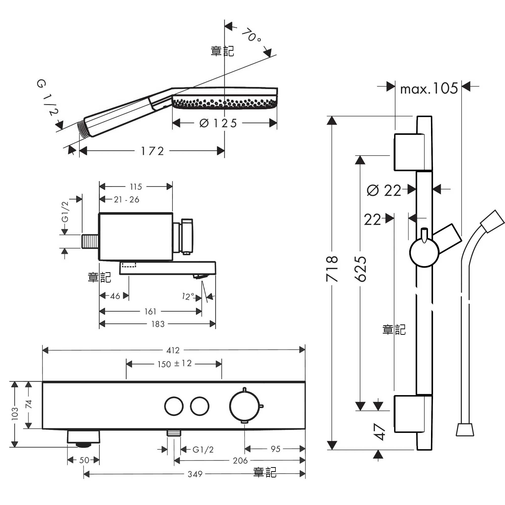 hansgrohe 淋浴組合 24340140_24500140_28632140 尺寸圖