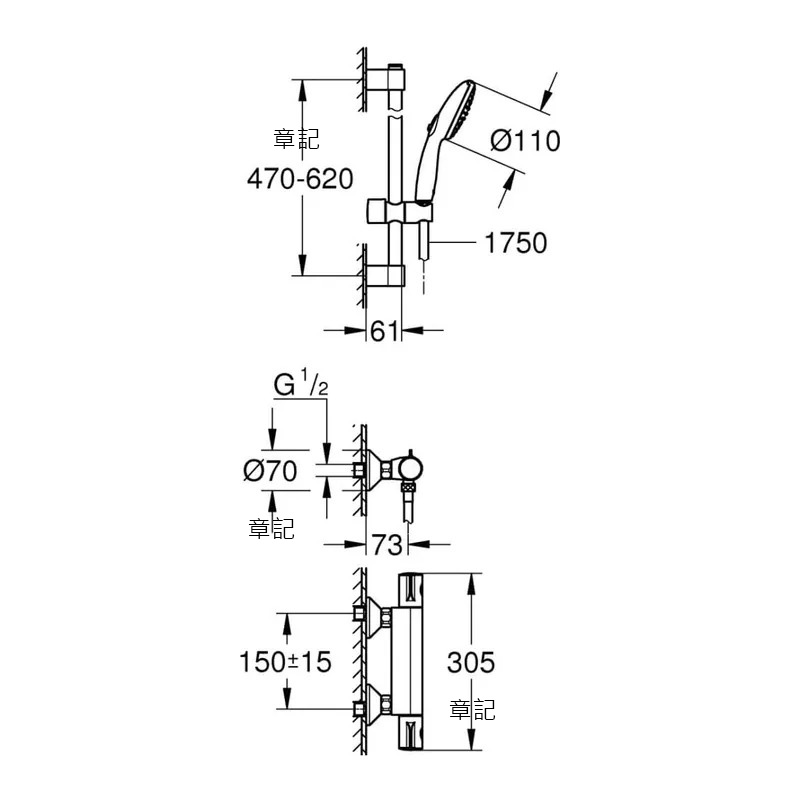 GROHE GROHTHERM 800 定溫淋浴滑桿組 34565002 尺寸圖