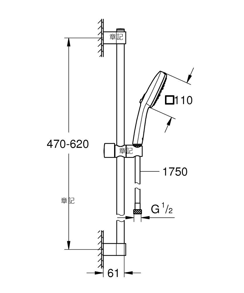 GROHE GROHTHERM 恆溫淋浴龍頭滑桿組 34719000_27786003 尺寸圖