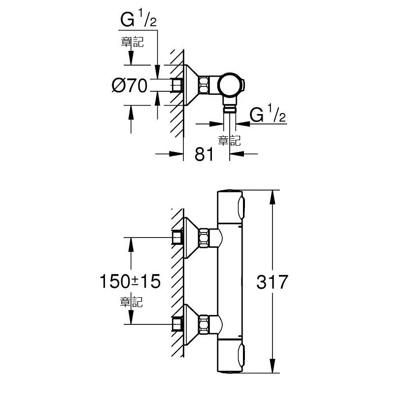 GROHE Grohtherm 500 恆溫淋浴龍頭 34793000 尺寸圖