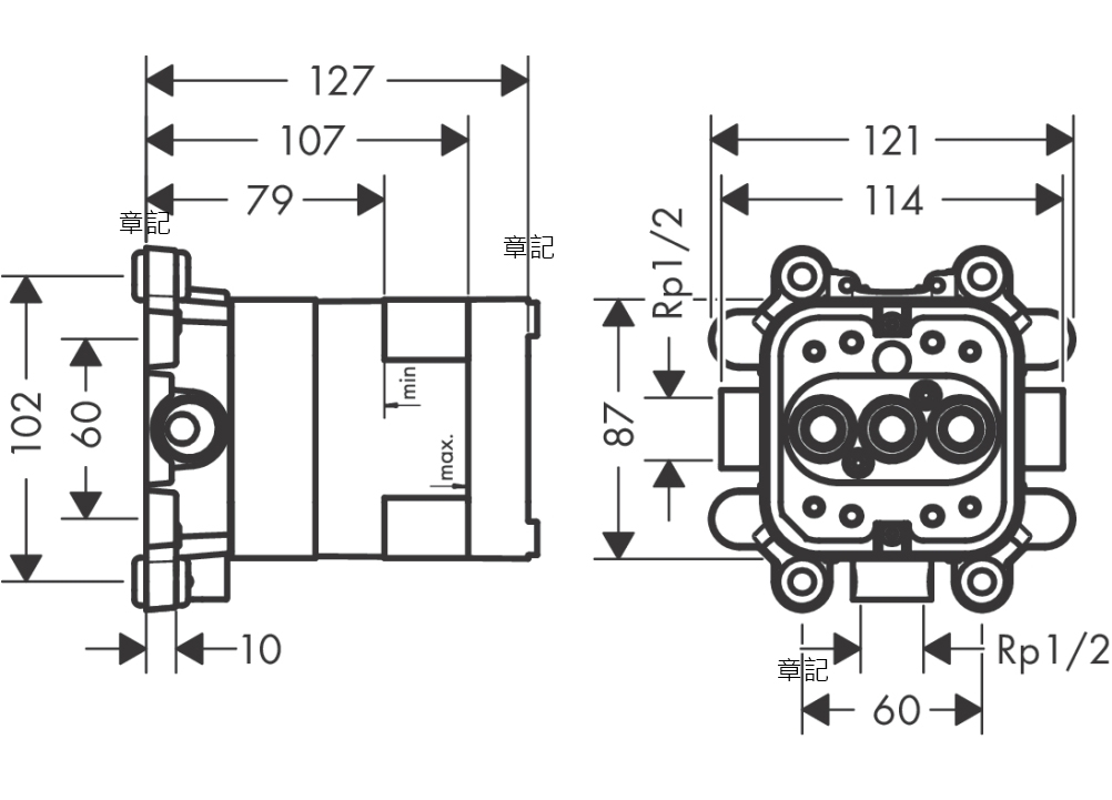 hansgrohe 二段天花花灑底座 35361180 尺寸圖