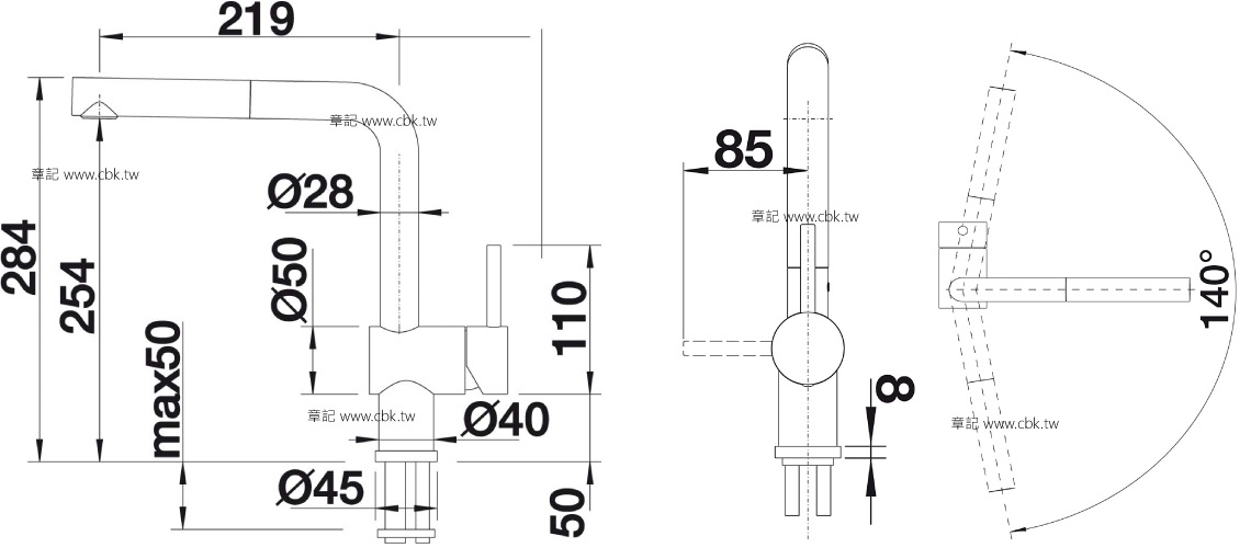 BLANCO LINUS-S 伸縮廚房龍頭 512402 尺寸圖