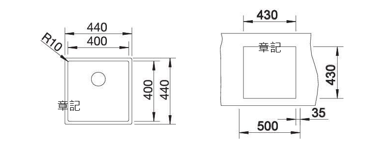 BLANCOCLARON 400-IF 不鏽鋼水槽(44x44cm) 521572 尺寸圖