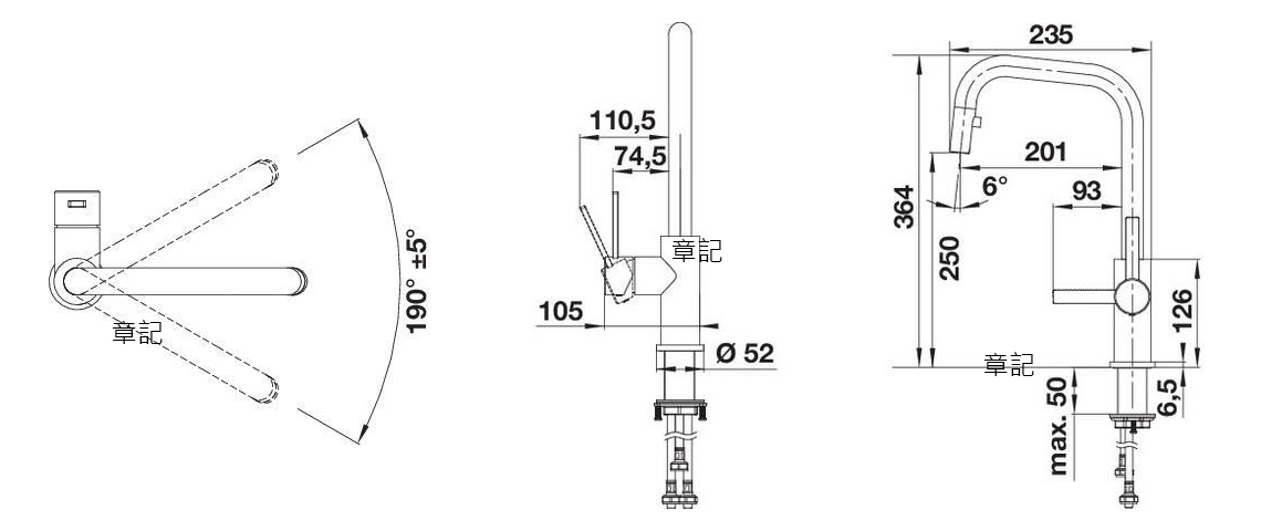 BLANCO JANDORA-S 不鏽鋼伸縮龍頭 526614 尺寸圖