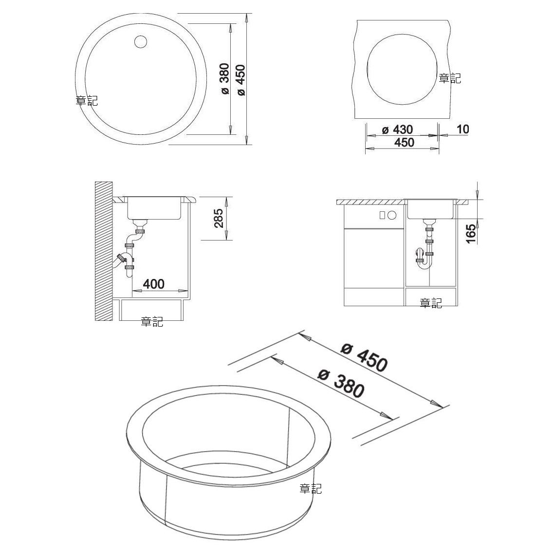 BLANCO RONDO 花崗岩圓槽(45x45cm) 527240 尺寸圖