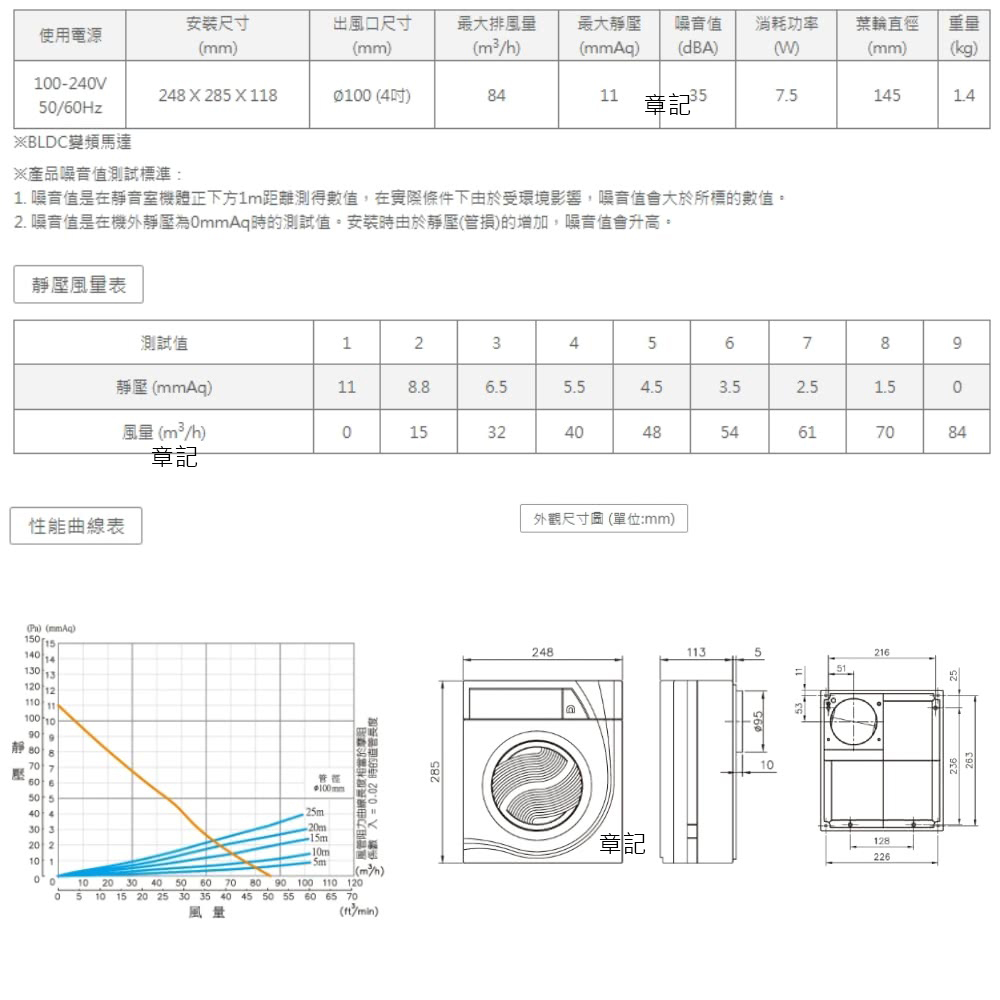 可拆式濾網 / 直流變頻馬達 / 低耗電 / 大風量 / 防水IP25