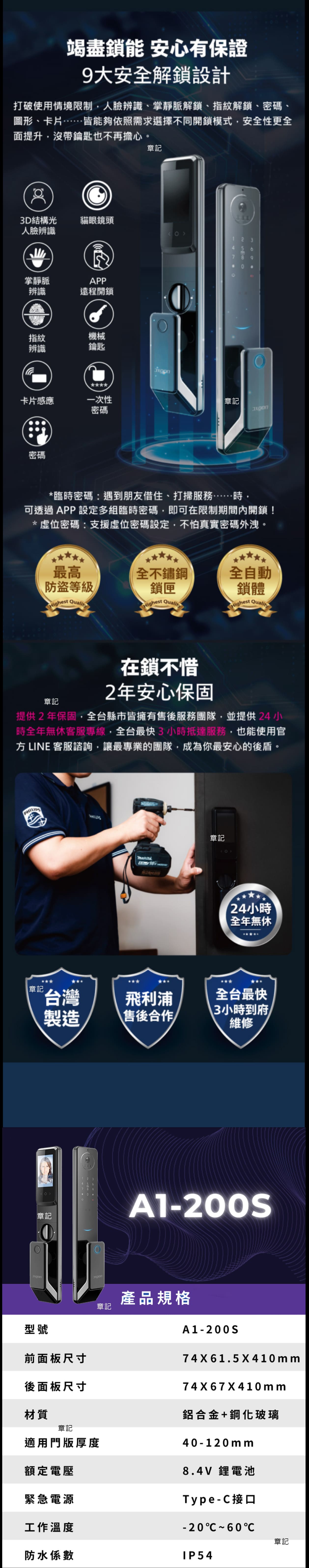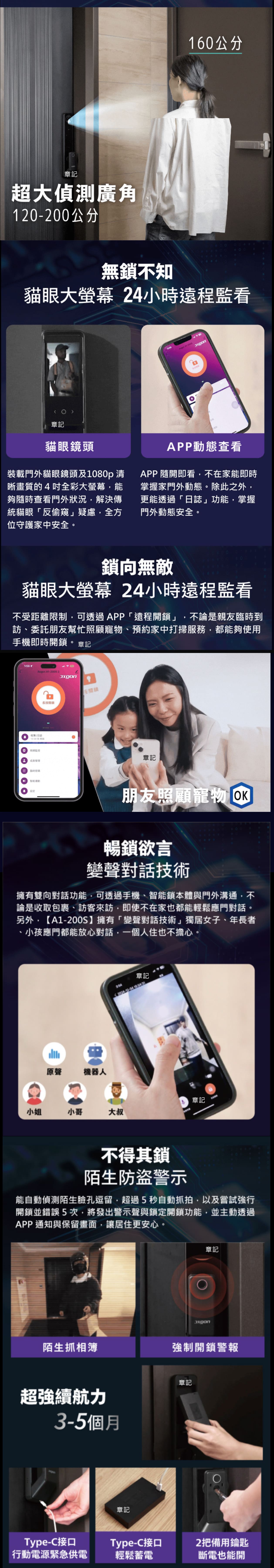 安全功能: 具備虛位密碼、雙重驗證功能以及自動偵測陌生臉孔逗留,確保使用者的安全和隱私。