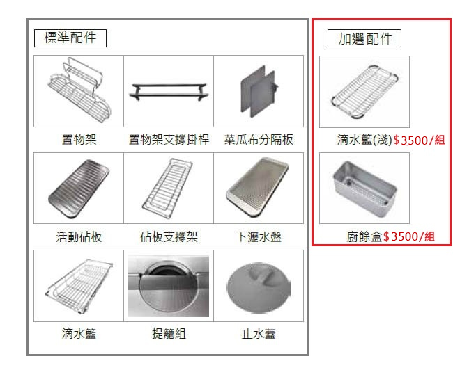 - 另有附:18cm大提籃、防蟑防臭存水彎、排水管