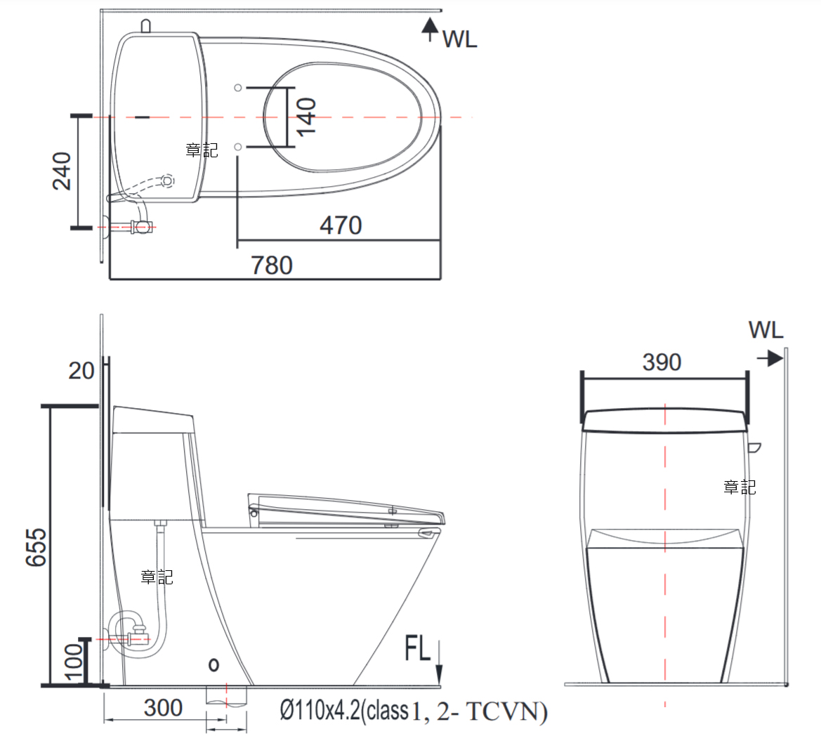 INAX 單體馬桶 AC-918VRN 尺寸圖