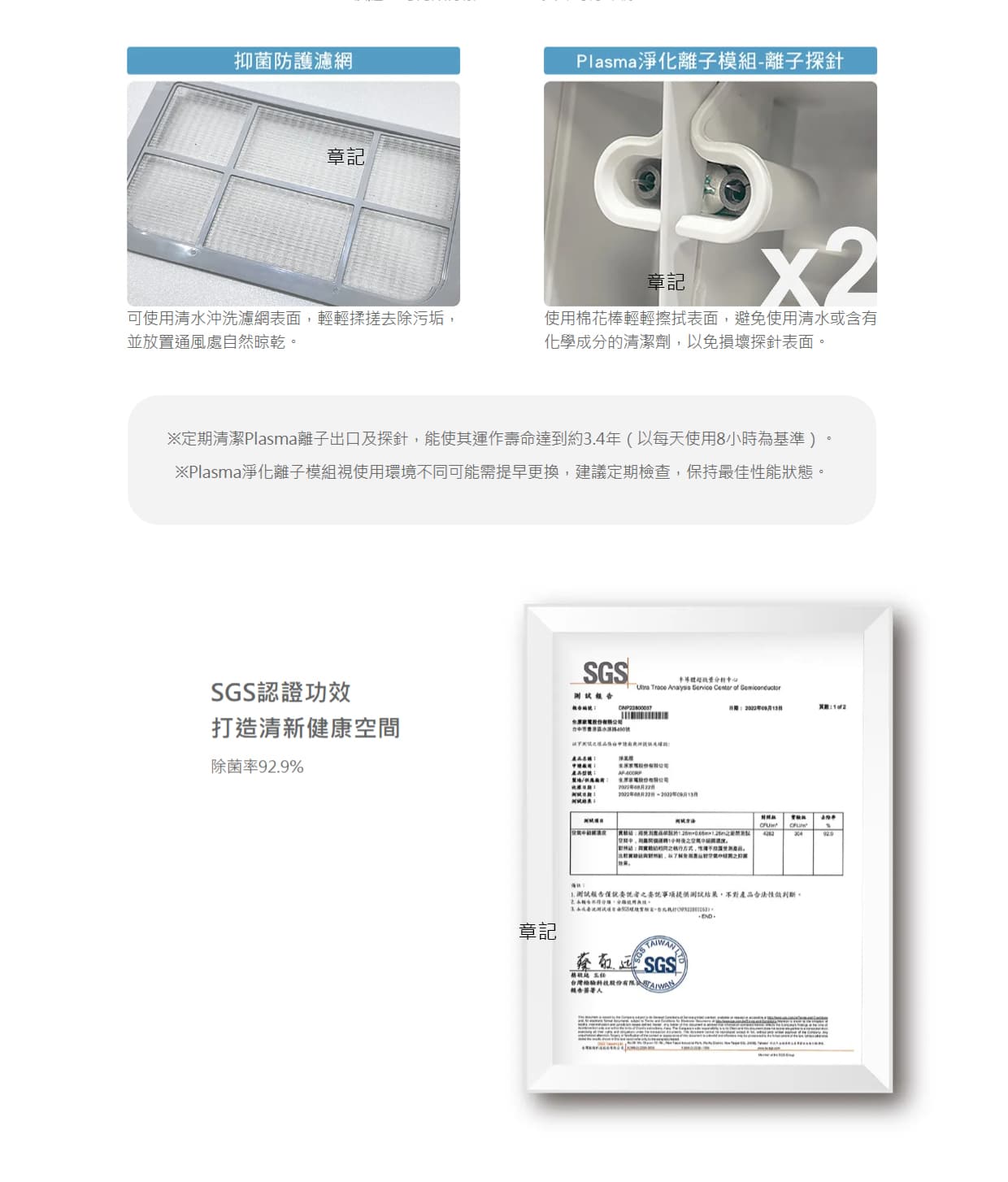 Plasma淨化離子模組視使用環境不同可能需提早更換,建議定期檢查,保持最佳性能狀態。