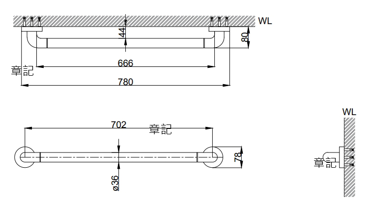 OVO 安全扶手 AH514 尺寸圖