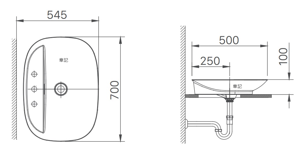 使用本檯面盆時,下方需搭配浴櫃或是人造石檯面,我們提供各式客製化防潮浴櫃及多種花色之人造石檯面供您選擇,竭誠歡迎您來展示中心參觀或撥服務專線07-2868111洽詢。