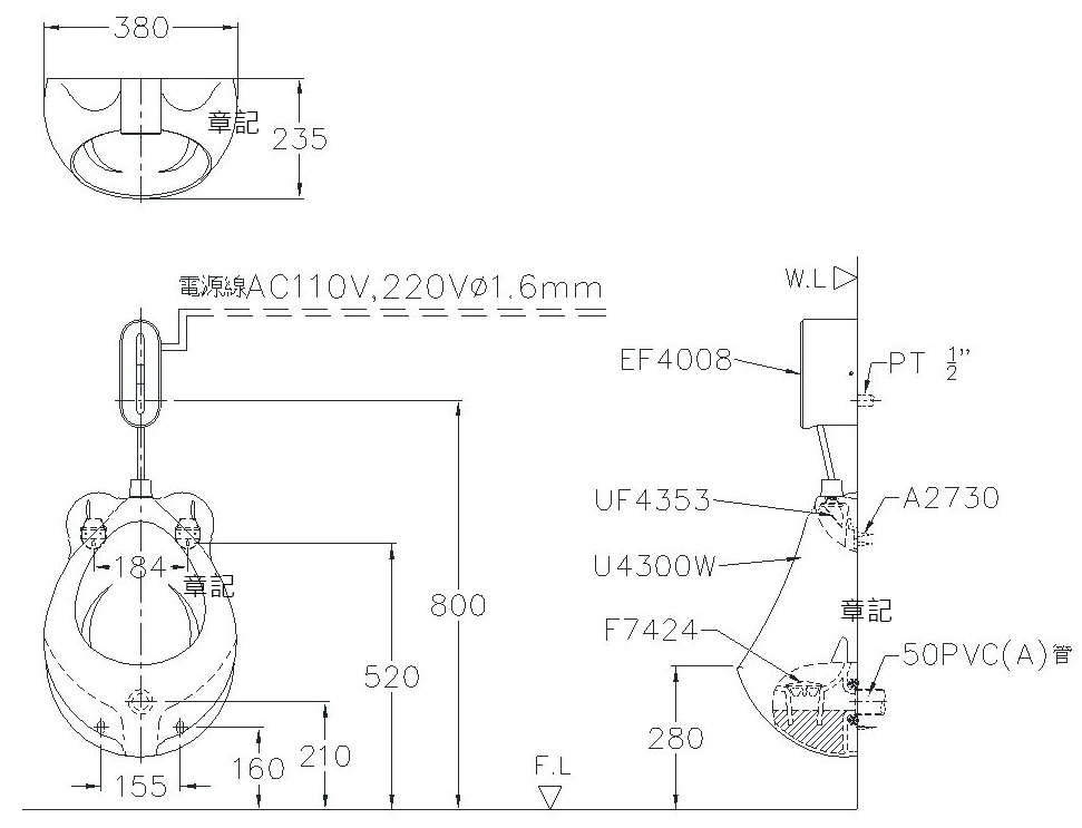 電光牌(TENCO)掛式便斗電沖設備 SU4329-Q