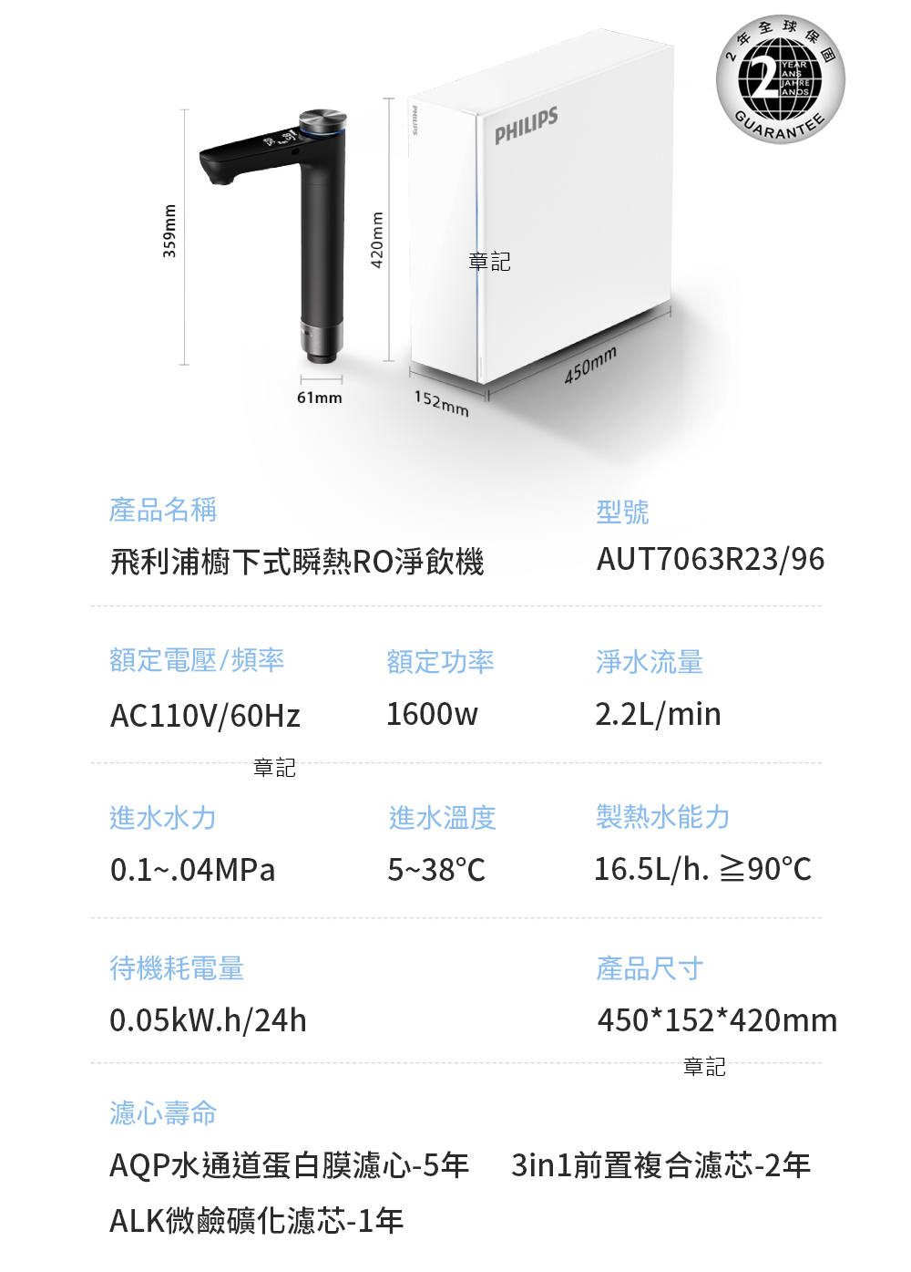 PHILIPS 櫥下RO瞬熱式淨水器 AUT7063