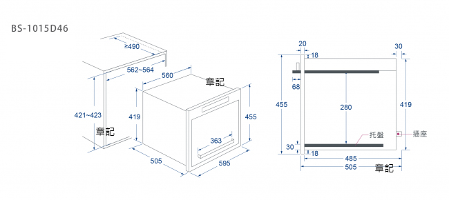 BlueSky 炊飯器收納櫃(曜岩黑) BS-1015D46 尺寸圖