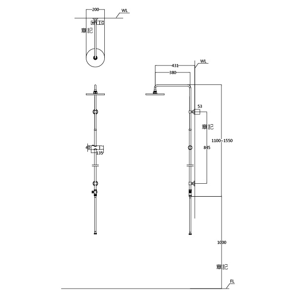 凱撒(CAESAR)加裝型精緻淋浴柱 BS119 尺寸圖