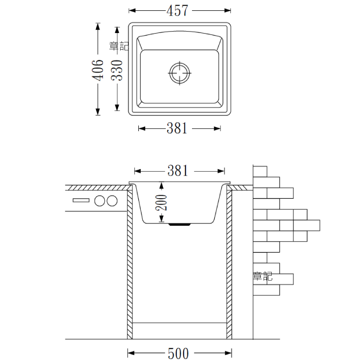 CARYSIL 德國珂瑞花崗岩水槽(46x41cm) C07 尺寸圖