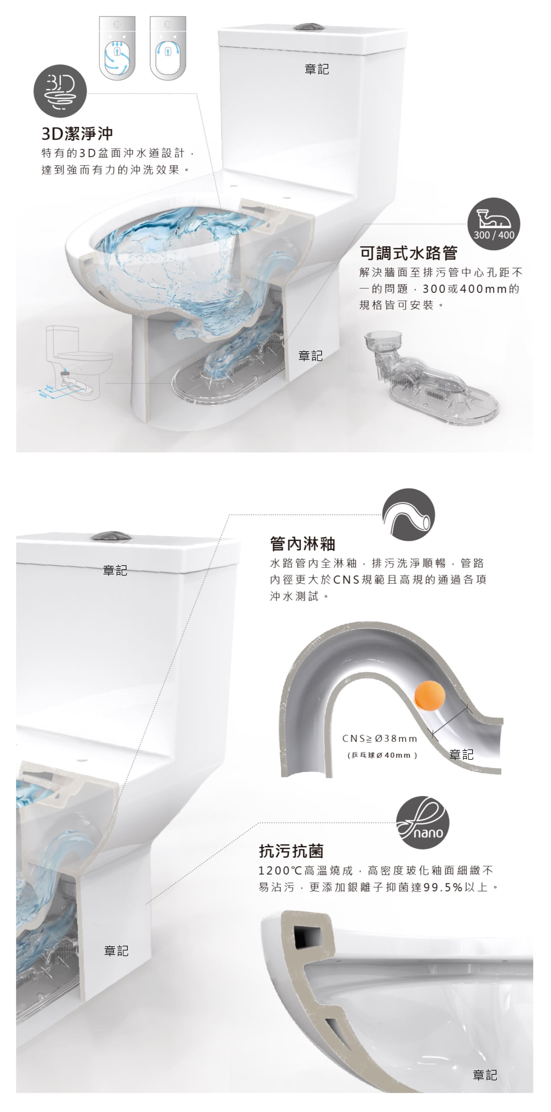 超蓮潔奈米釉面、兩段式沖水