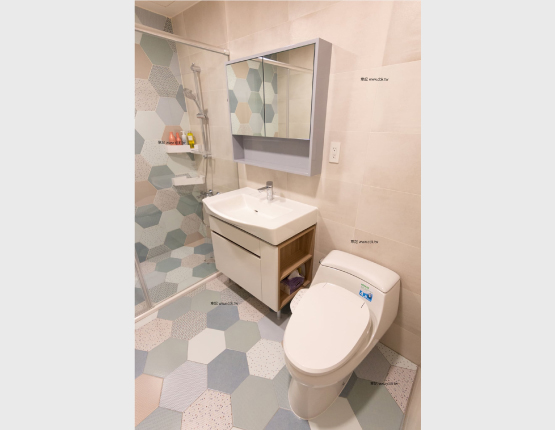 本案為樓齡25年的住宅大樓翻修,業主是一對非常和氣的退休夫婦,對於空間美感的喜好相當有創意,選擇以拼花磚讓空間呈現活潑氛圍。