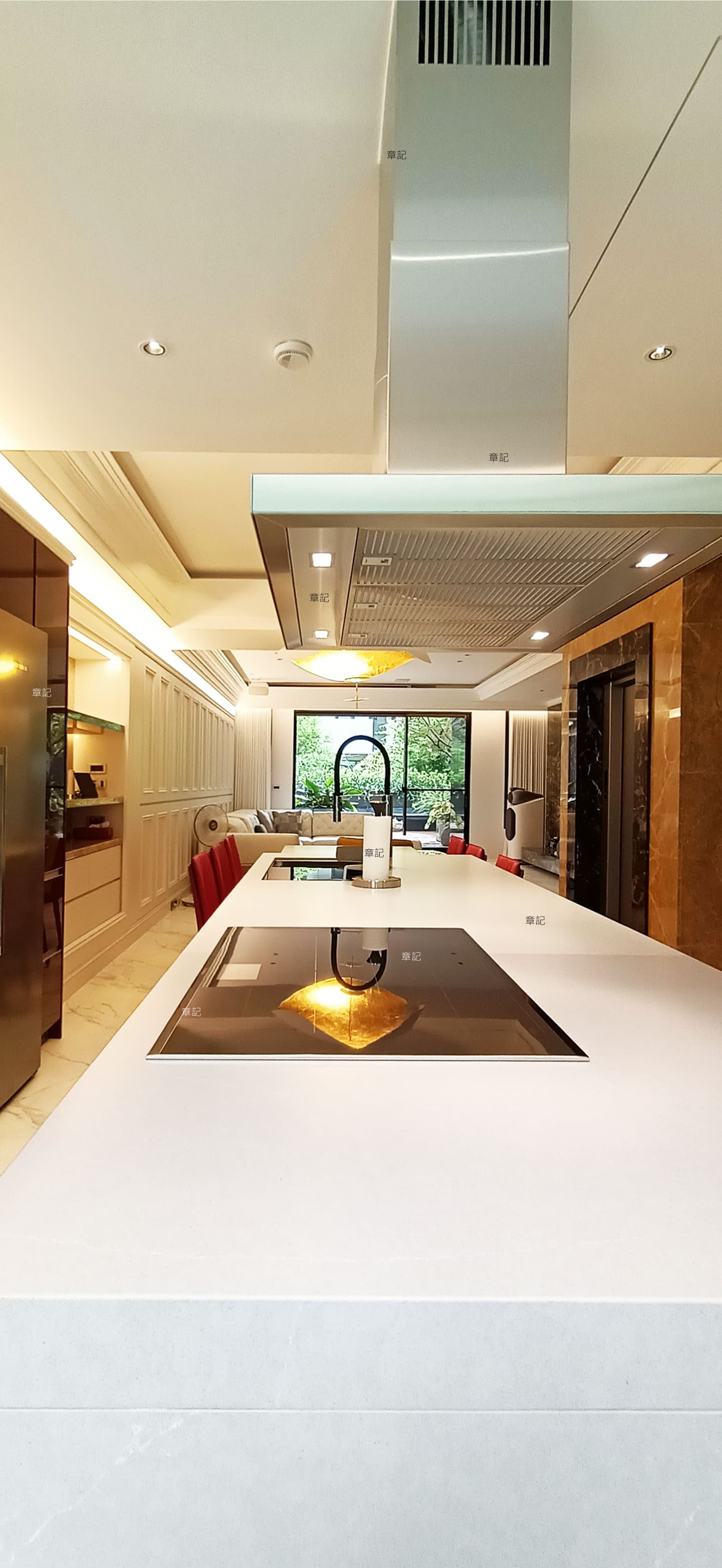 廚房空間選用KOHLER Kitchen Notiz-C 系列,將功能性與美感融為一體。櫥櫃外觀採簡潔俐落的設計風格,再搭配頂級三機及廚房家電,演繹獨有的奢華風範,完美呼應頂級客層的高端品味與生活哲學!