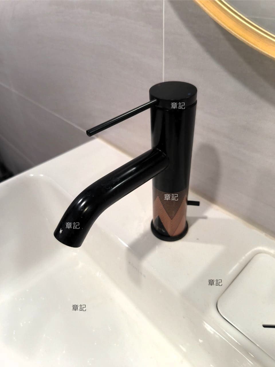 兩個衛浴空間,皆採用了黑色、金色作為視覺點綴,使整間衛浴呈現精緻的設計感。全自動馬桶、檯面盆浴櫃、花灑淋浴柱、暖風乾燥機等高階衛浴設備,令人彷彿置身於五星級飯店中。