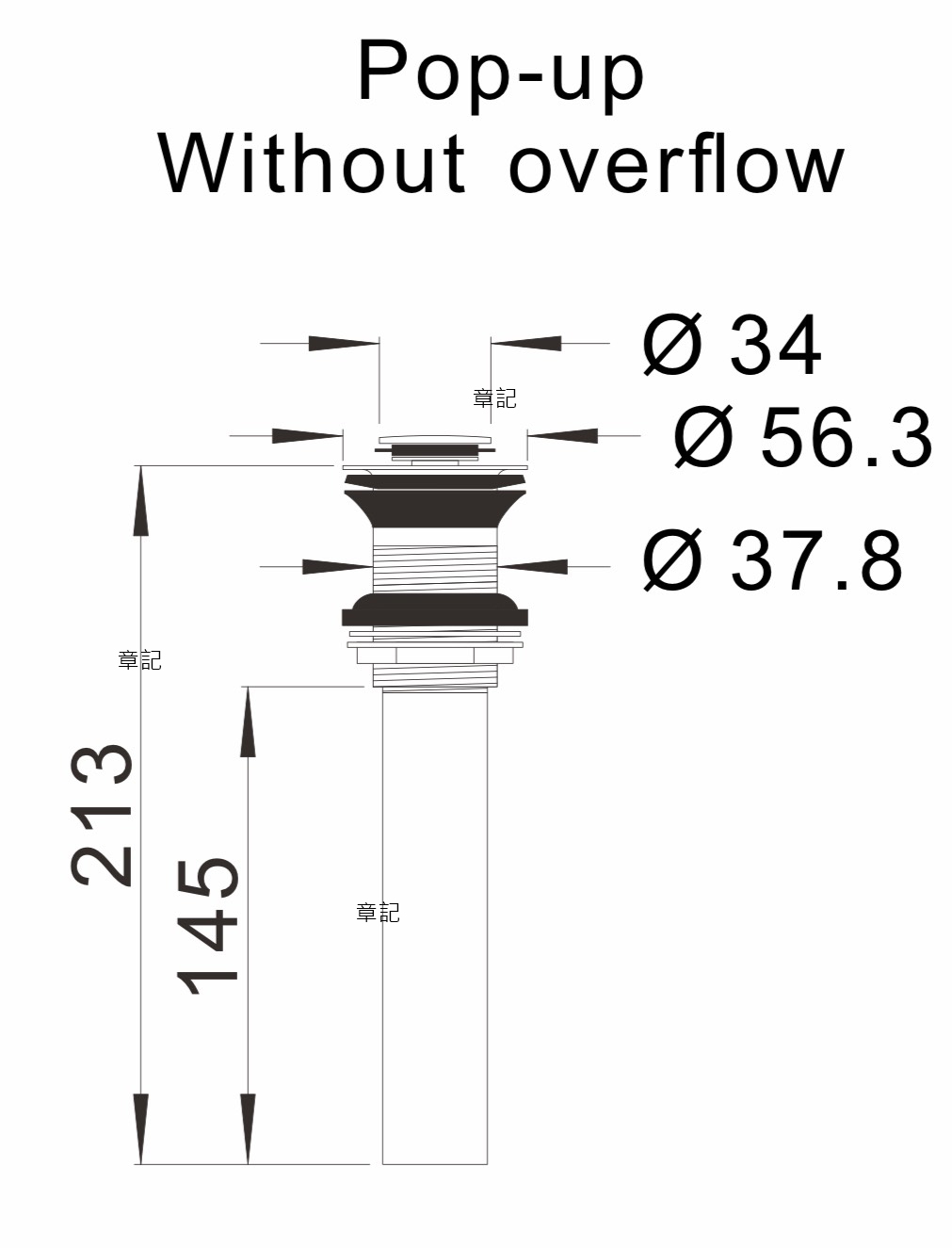 CBK按壓式落水頭 CBK-090B1P-MB 尺寸圖