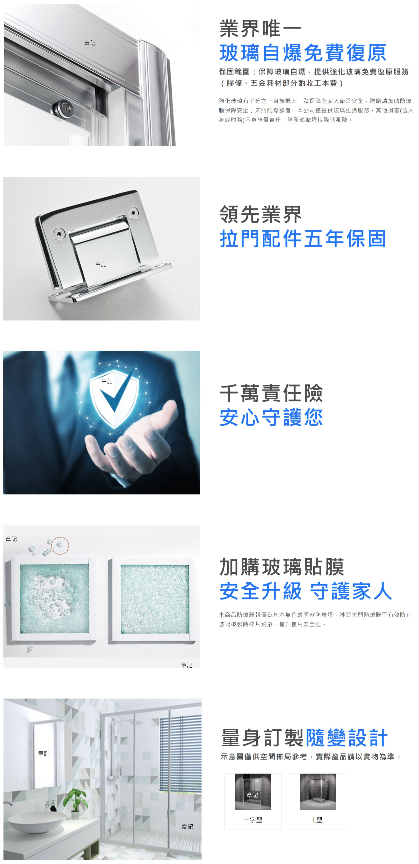 4. 本商品售價僅包含淋浴拉門的運送及基本安裝,若有特殊需求及疑問,請洽服務人員諮詢。
