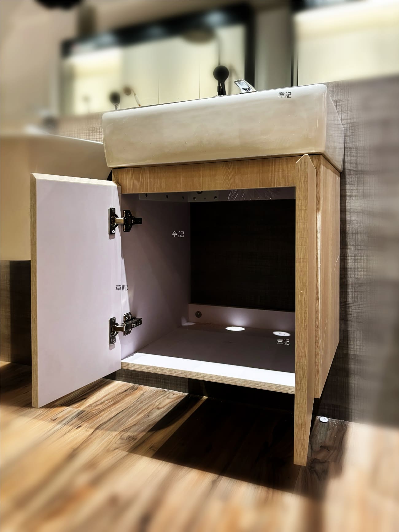 下圖:本檯面盆亦可另與人造石檯面或石英石檯面結合,製作更大尺寸的浴櫃盆組。 我們提供客製化服務(花色/尺寸),歡迎洽詢07-2868111。
