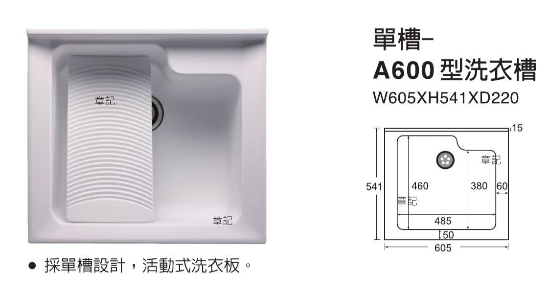 洗衣槽尺寸600型:W60.5 x D54 x H22(槽深) cm